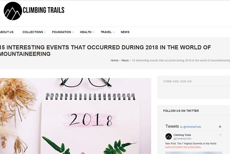 15 INTERESTING EVENTS THAT OCCURRED DURING 2018 IN THE WORLD OF MOUNTAINEERING by Climbing Trail News / Read the Original Article Here 2018 is over, folks! Before we gear up for the climbing season in brand new 2019, we’d like to round up some of the most important events that occurred in 2018. The initial…